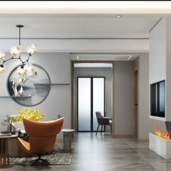 This 3D scene features a modern style living room with contemporary interior design. The room is elegantly decorated with a focus on modern aesthetics and functionality. Explore the layout and decor elements in this visually appealing setting.