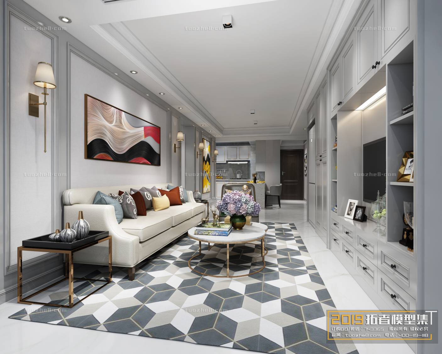 Modern Style Living Room 3D Scene