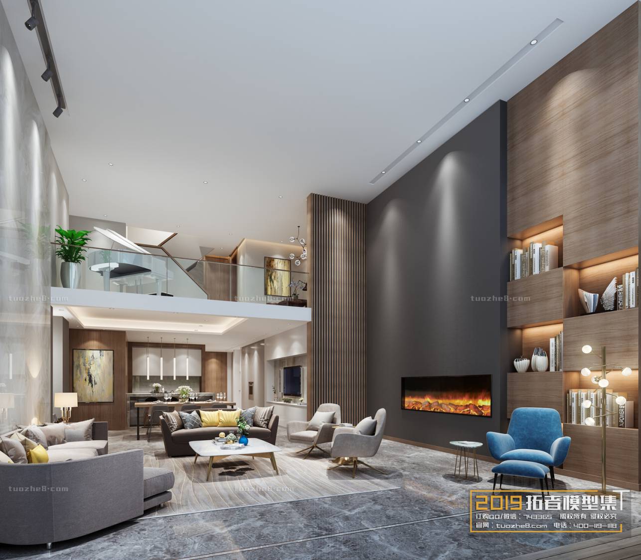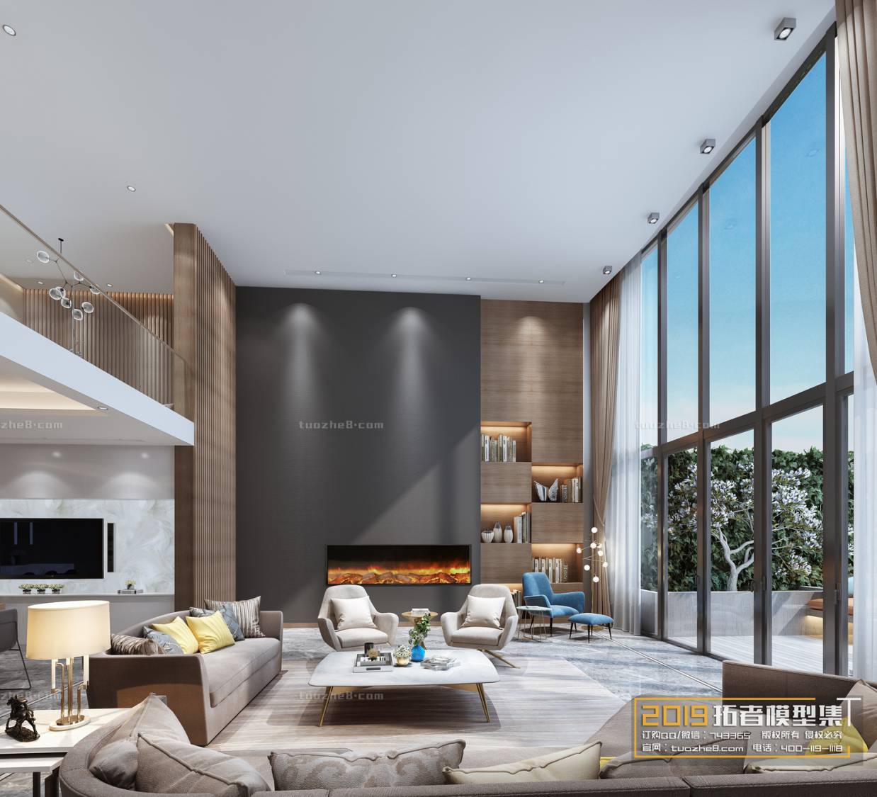 This 3D scene features a modern style living room with contemporary interior design. The room is elegantly decorated with a focus on modern aesthetics and functionality. The layout is designed to maximize space and create a comfortable yet stylish living environment. Explore this scene for inspiration on modern interior design concepts.