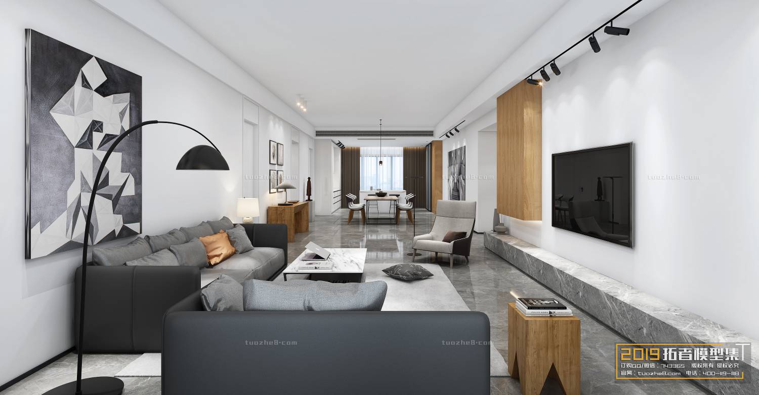 Modern Style Living Room 3D Scene