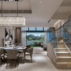 This 3D scene features a modern style living room with contemporary interior design elements. The room is elegantly decorated with a focus on clean lines and a sophisticated color palette. The furniture and decor create a harmonious and inviting space, perfect for relaxation and entertainment. Experience the beauty of modern interior design in this stunning living room setting.