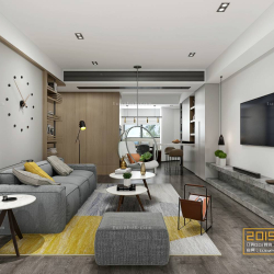 This 3D scene features a modern style living room with contemporary interior design. The room is elegantly decorated with a focus on modern aesthetics and functionality. Explore the details of the furniture, lighting, and overall layout to get inspired for your own interior design projects.