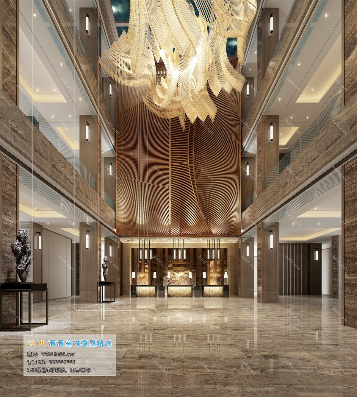 Modern Style Lobby Front Desk 3D Scene