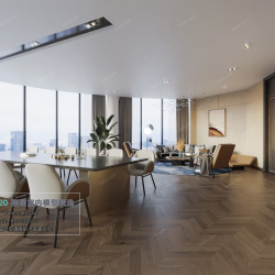 This 3D scene showcases a modern style office meeting reception room, designed with attention to detail. The model is created in 3DS MAX and is ideal for interior design projects. The room features contemporary furniture and a sleek design, perfect for professional settings.