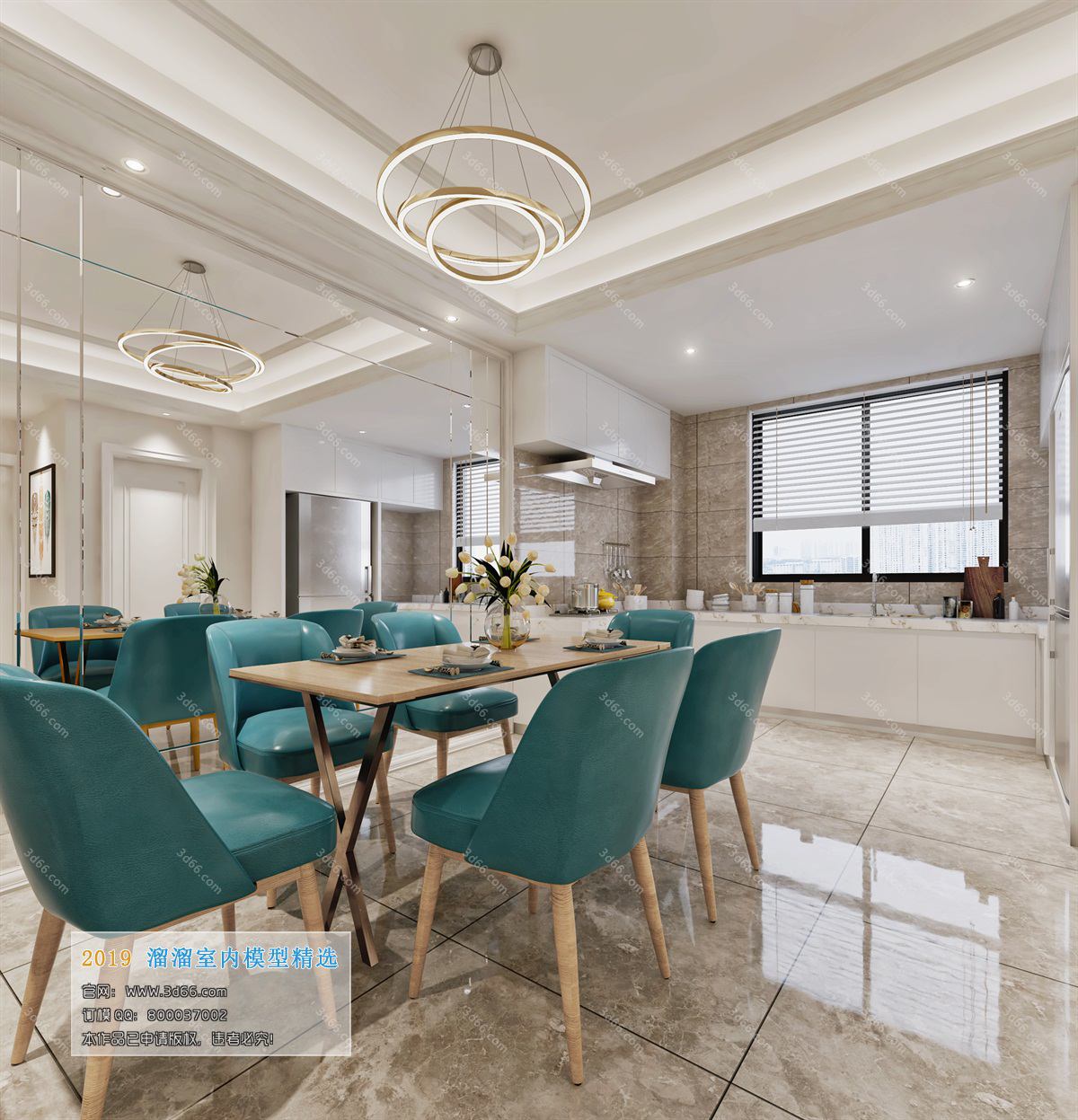 This 3D scene showcases a modern style restaurant kitchen with a contemporary design. The layout features sleek lines and a functional setup, perfect for a modern dining establishment. Explore the details and design elements in this visually appealing 3D rendering.