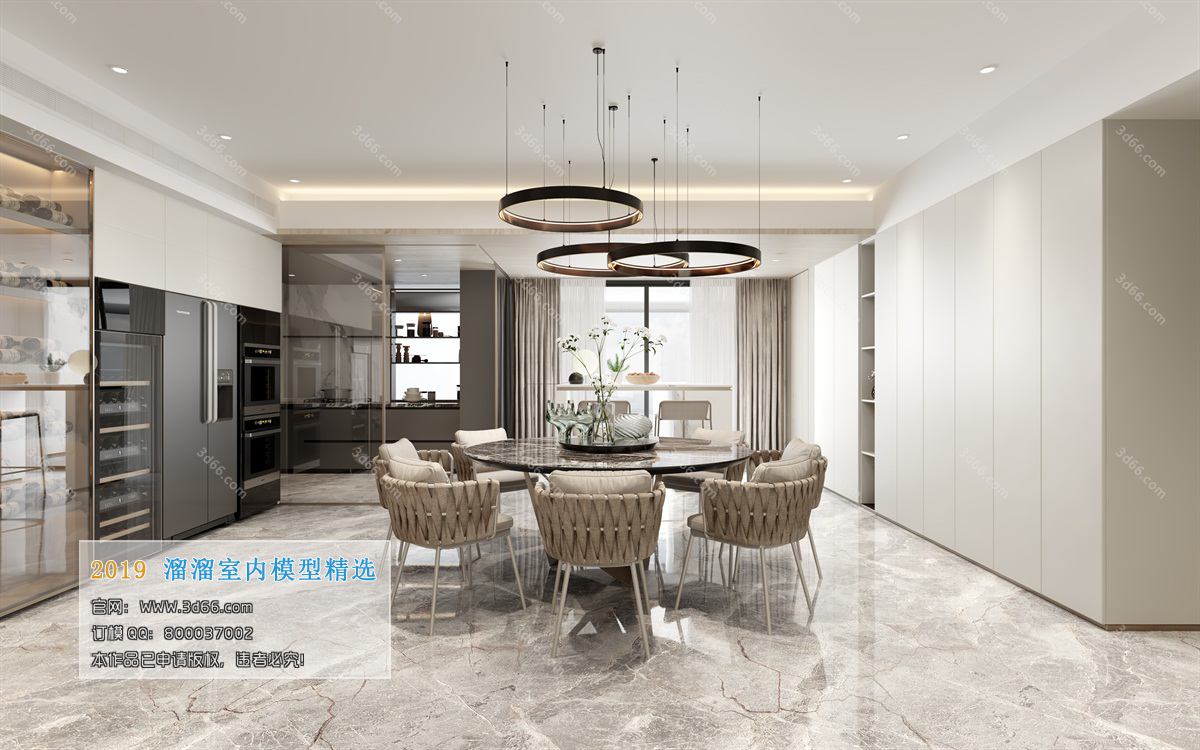 This 3D scene showcases a modern style restaurant kitchen design. The layout features contemporary elements and a sleek interior architecture. Explore the details of this 3D model preview to get inspiration for your own kitchen design projects.