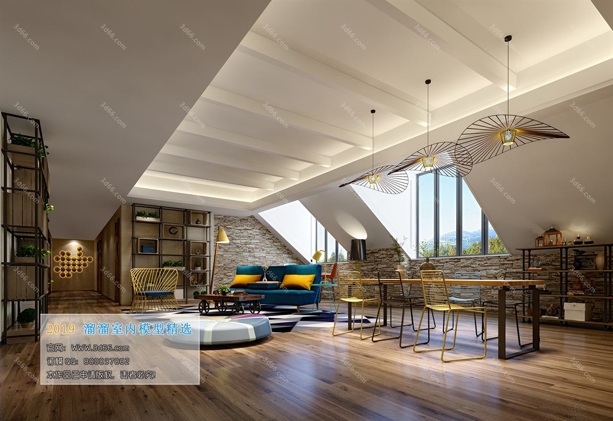 This 3D scene showcases a modern style restaurant kitchen with a contemporary design. The layout features sleek lines and a functional setup, perfect for a modern dining establishment. The scene is created in 3DS MAX format, providing a detailed look at the kitchen's design and elements.