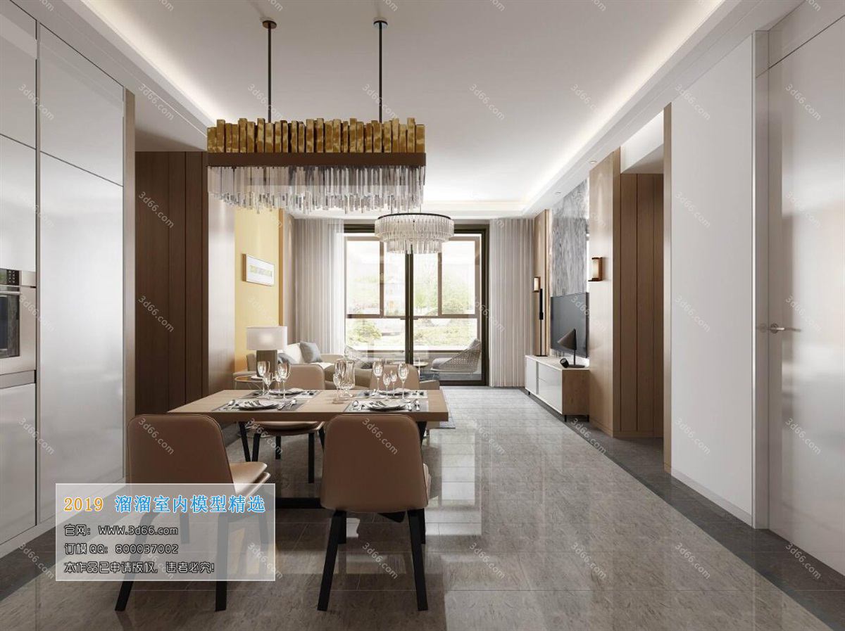 This 3D scene showcases a modern style restaurant kitchen design. The layout features contemporary elements and a sleek design. Explore the details of this 3D model to get inspiration for your own kitchen design projects.