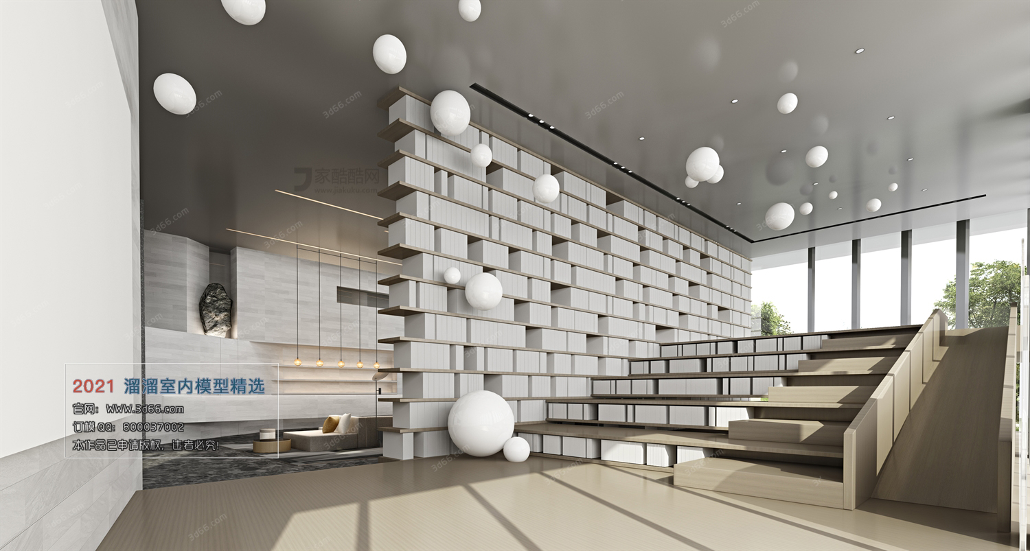This 3D scene showcases a modern style Vray model, providing a preview of the design and details. Explore the intricate elements and unique features of this visually appealing model.