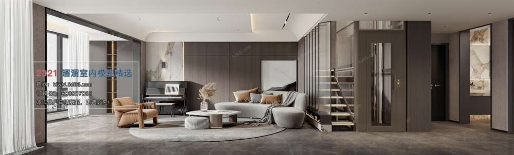 This image showcases a modern style Vray model in a 3D scene. The design features intricate details and a contemporary aesthetic. Explore the interior architecture and design elements in this visually appealing representation.