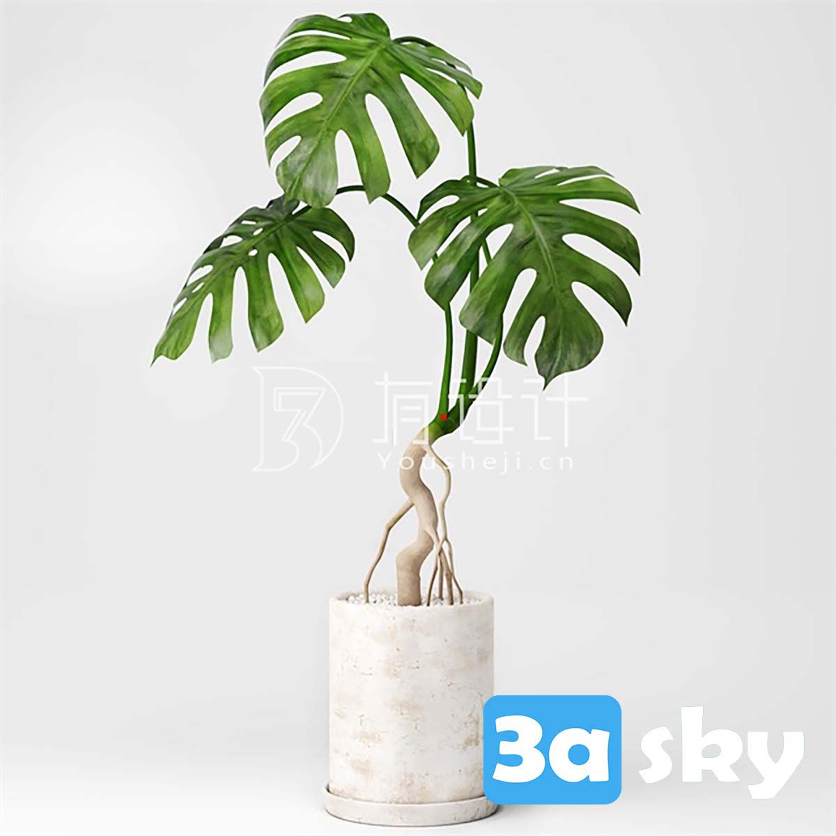 This 3D model features a realistic Monstera plant created in 3DS MAX. It is a high-quality file suitable for various design projects. Download now and enhance your visualizations with this detailed plant model.