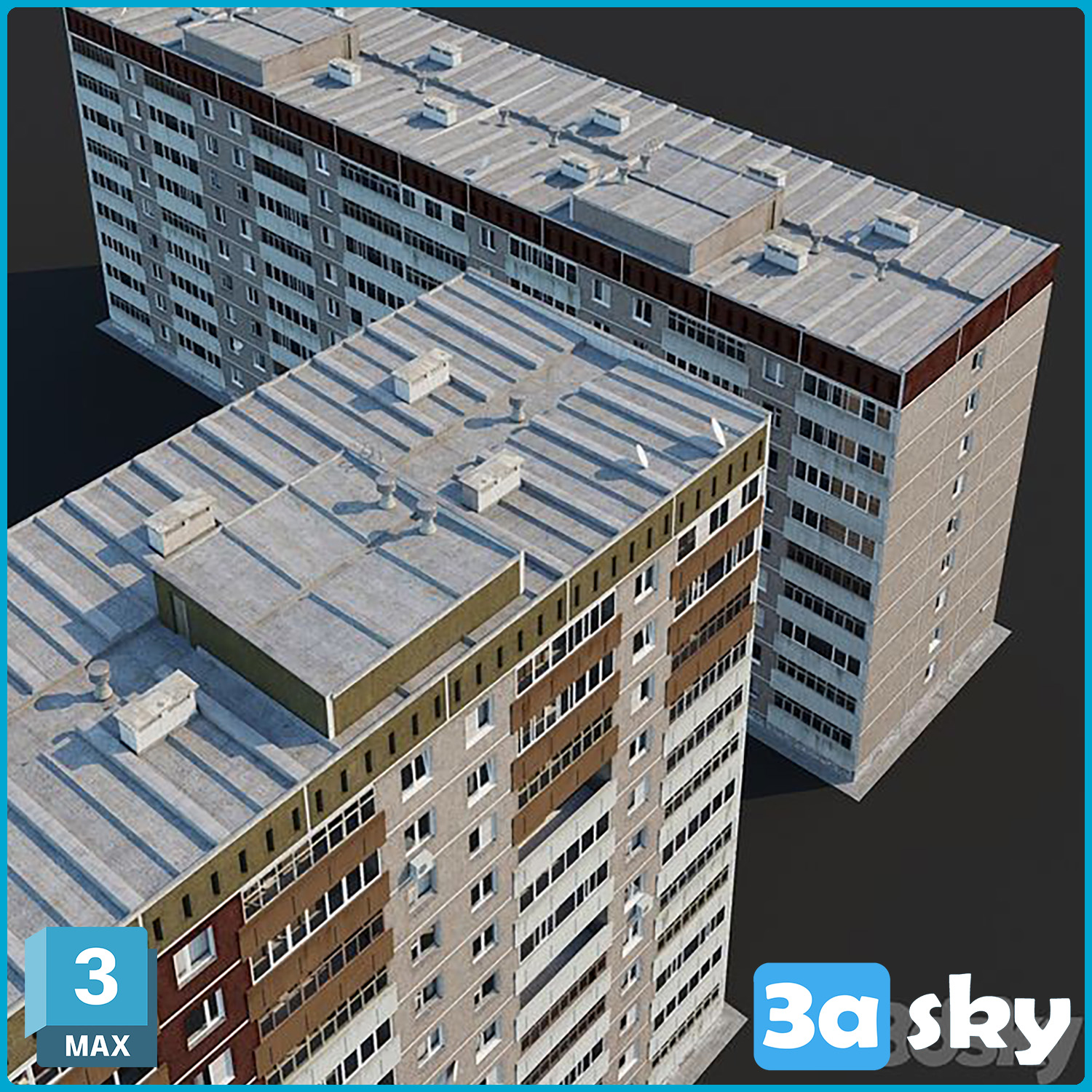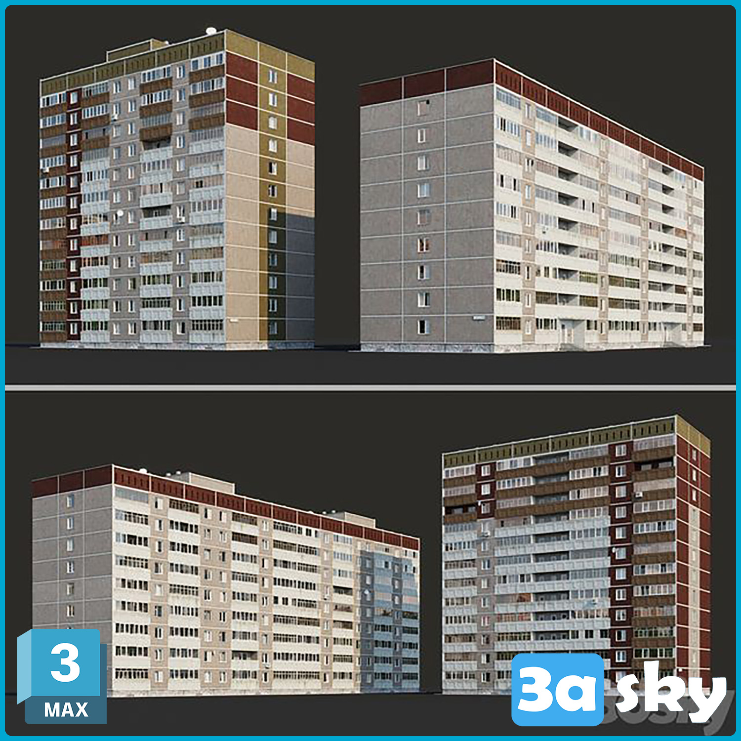 This 3D model showcases a multi-storey residential building, designed and rendered using 3DS Max software. The model is ideal for architectural visualization and design projects, offering a detailed representation of a modern residential structure.