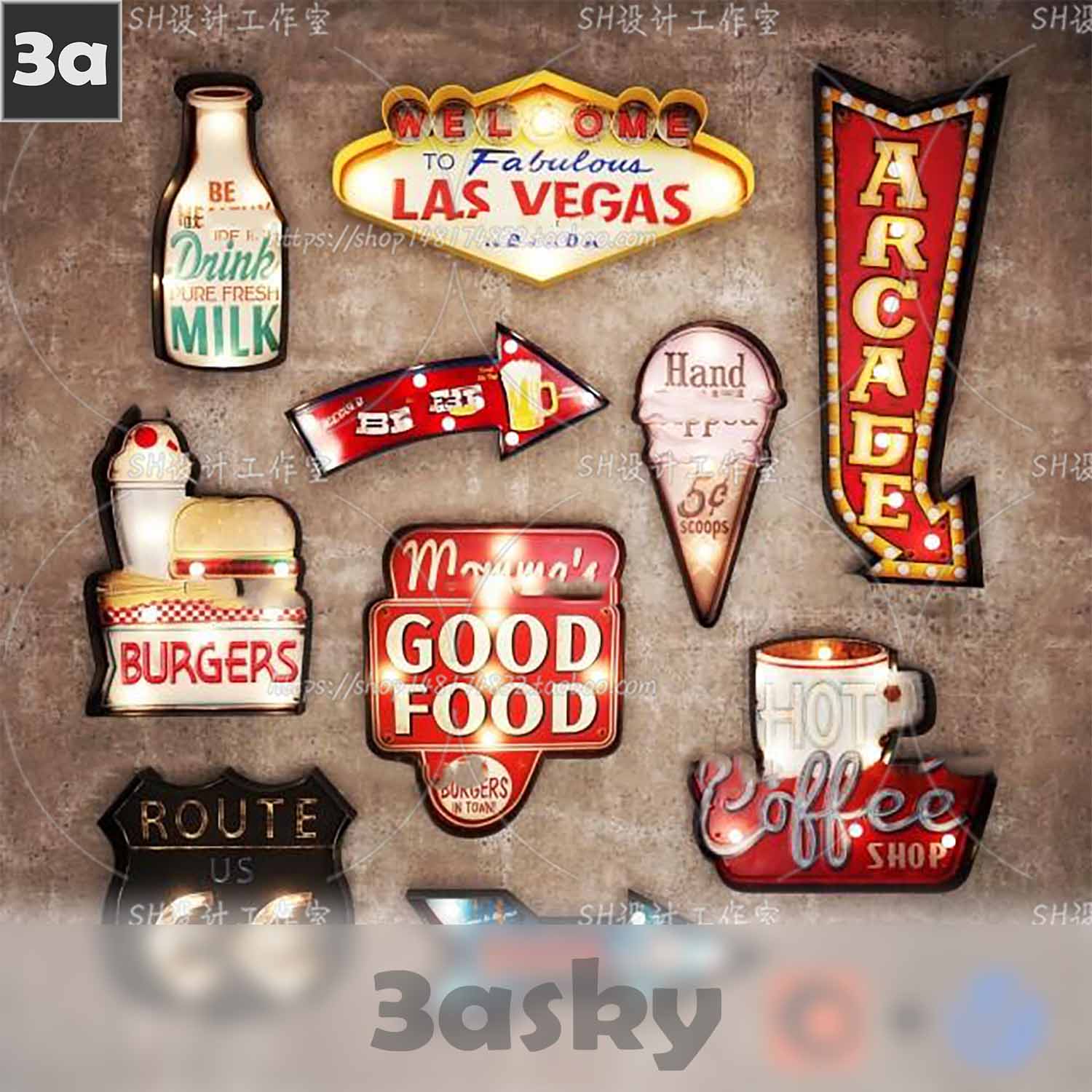 This 3DS Max model showcases a stunning neon lighting design. The preview image highlights the intricate details and vibrant colors of the neon lights. Perfect for architectural visualization or interior design projects.