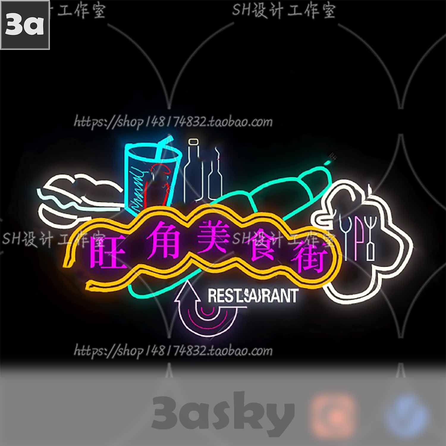 This image features a preview of the Neon 27 design created in 3DS MAX with intricate lighting effects. The vibrant colors and dynamic composition make it a visually striking piece for design enthusiasts and 3D modelers alike.