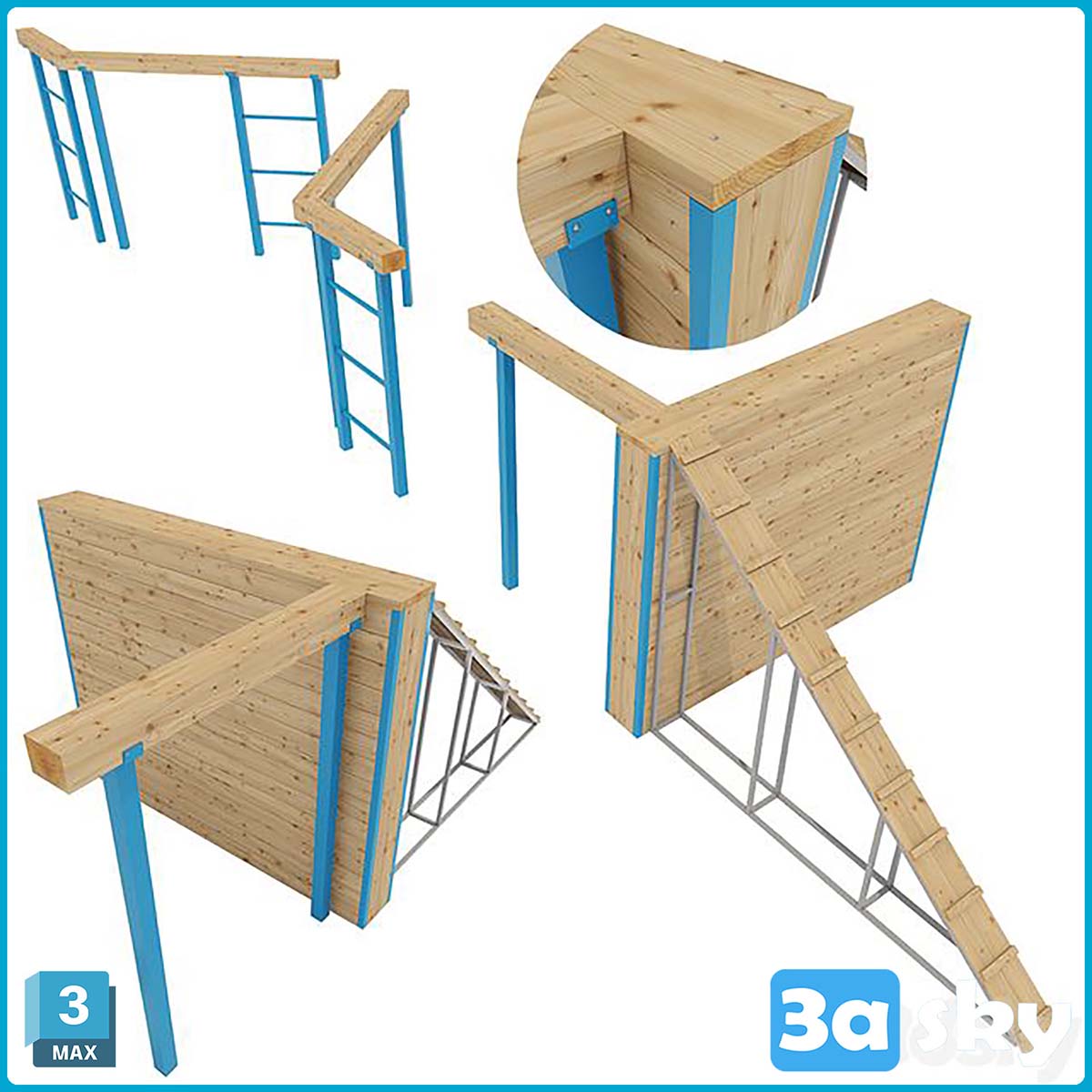 This 3D model showcases an obstacle course with a rubber crumb surface, ideal for playground designs and architectural visualization projects. The intricate details and realistic textures make it a valuable asset for designers and architects looking to enhance their projects.