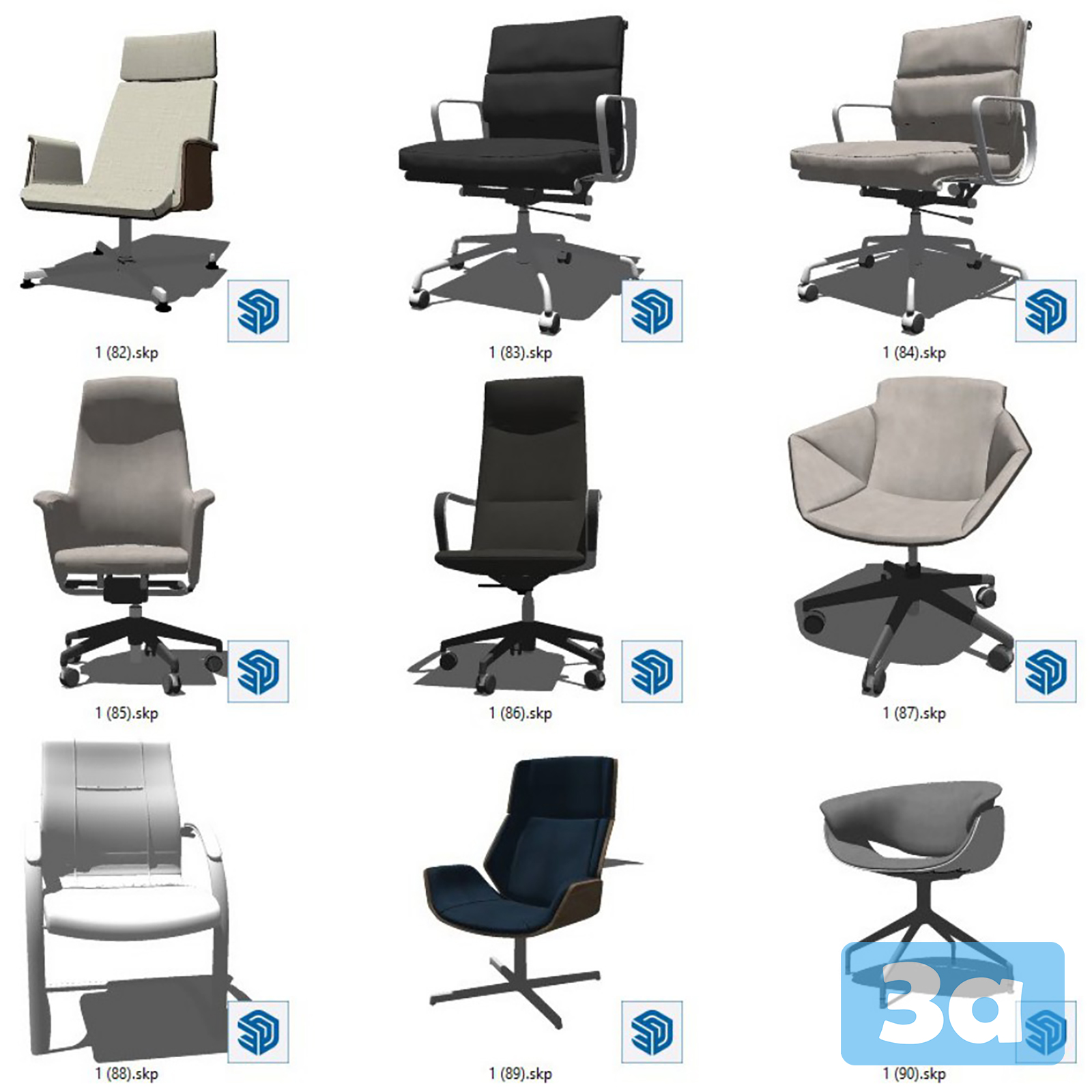This 3D model showcases a modern office chair designed in Sketchup. It is suitable for use in interior design projects, architectural visualization, and furniture design. The model features a sleek and ergonomic design, making it a versatile addition to any office setting. Download this high-quality 3D model to enhance your design projects.