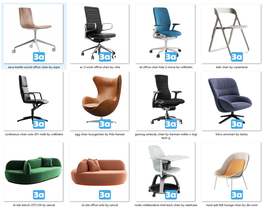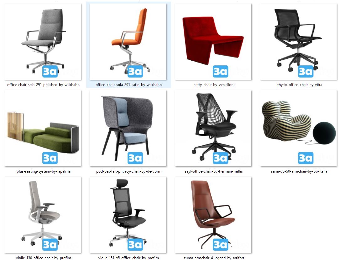This 3D model showcases a detailed office chair designed for use in interior design projects. Created using 3DS MAX/FURNITURE, this model is perfect for architectural visualization and rendering purposes. The high-quality design and attention to detail make it a valuable asset for professionals in the field of 3D modeling and design.