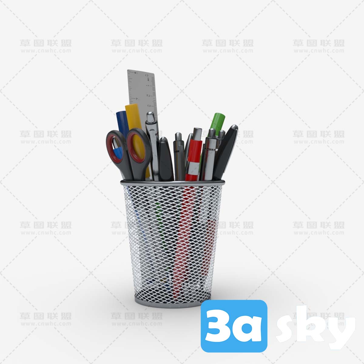 This SketchUp file features a collection of office stationery items for decoration purposes. It includes various items such as pens, clips, and other office supplies. Use this file to enhance your design projects with realistic 3D models of office stationery decorations.