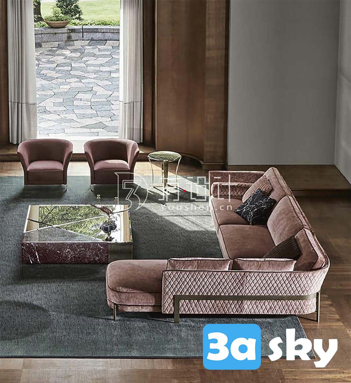This 3D model features the Opera Contemporary Cosmo sofa and armchair, ideal for adding a touch of elegance to your interior design projects. The detailed design and high-quality rendering make it a perfect choice for architectural visualization and furniture design. Download this 3DS MAX furniture model and elevate your design projects.