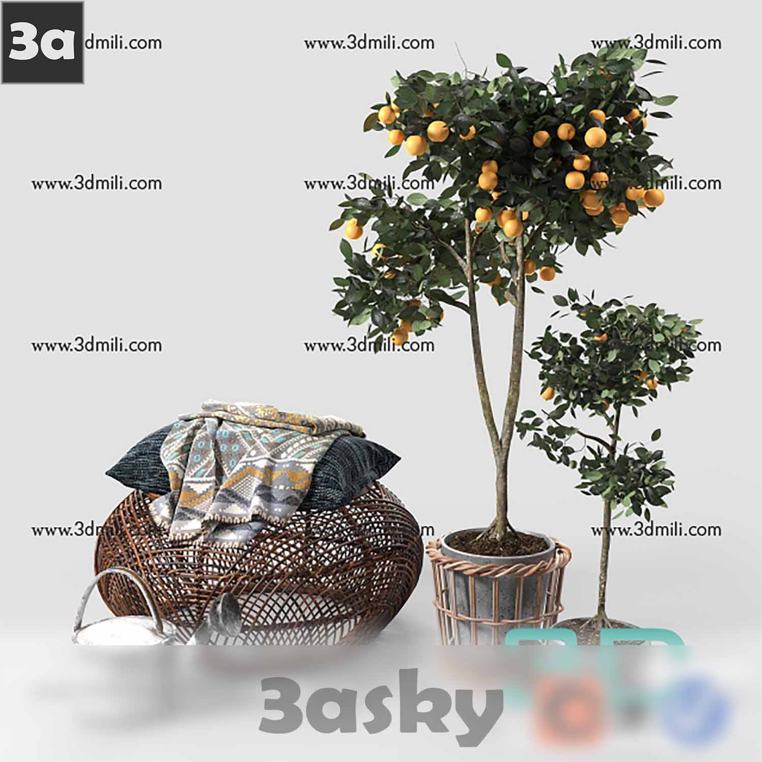 This 3D model features a collection of detailed orange trees suitable for architectural visualization and landscaping projects. The model is designed for use in 3DS MAX and provides a realistic representation of orange trees, perfect for adding greenery and natural elements to your designs.