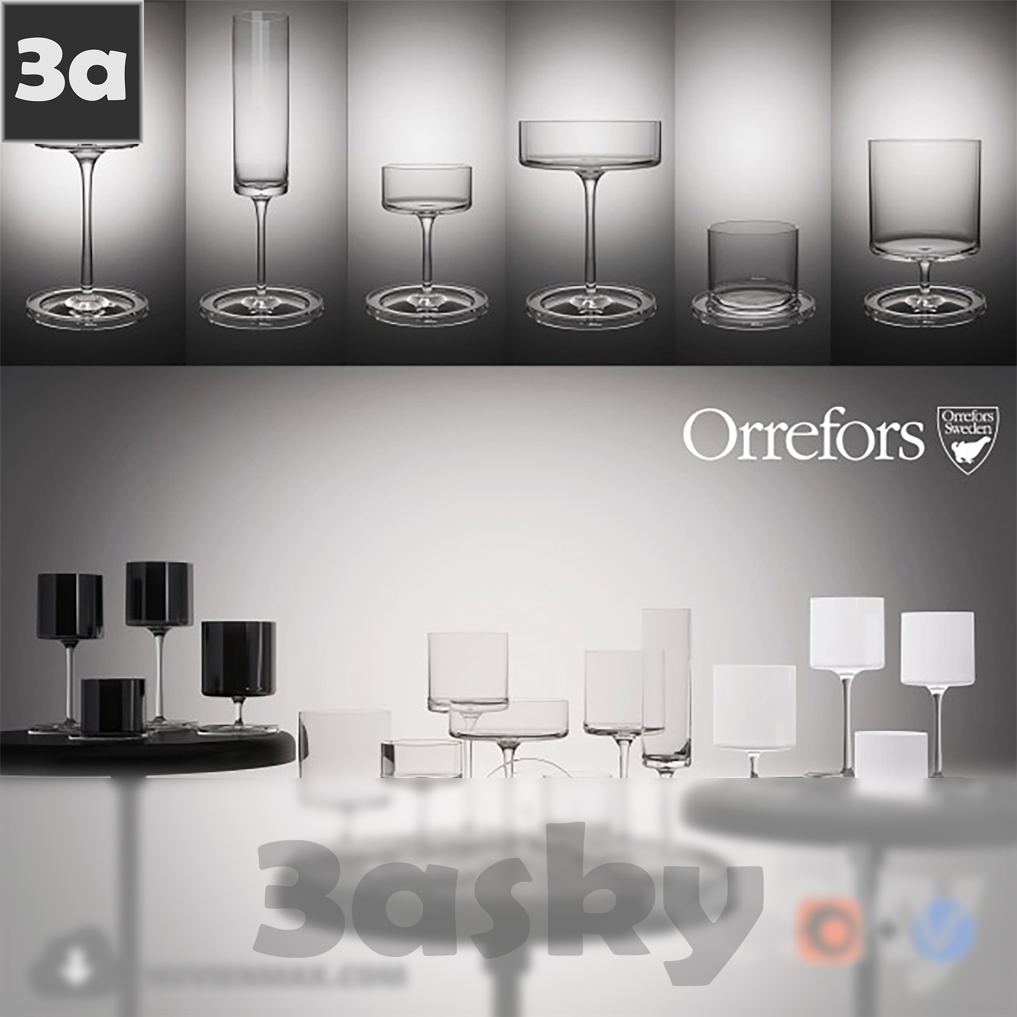 This 3D model showcases the exquisite Orrefors glasses created by the renowned designer Karl Lagerfeld. The model is perfect for interior decoration projects, providing a touch of elegance and sophistication to any setting. Explore the intricate details and craftsmanship of these glasses in digital format, ideal for design enthusiasts and professionals alike.