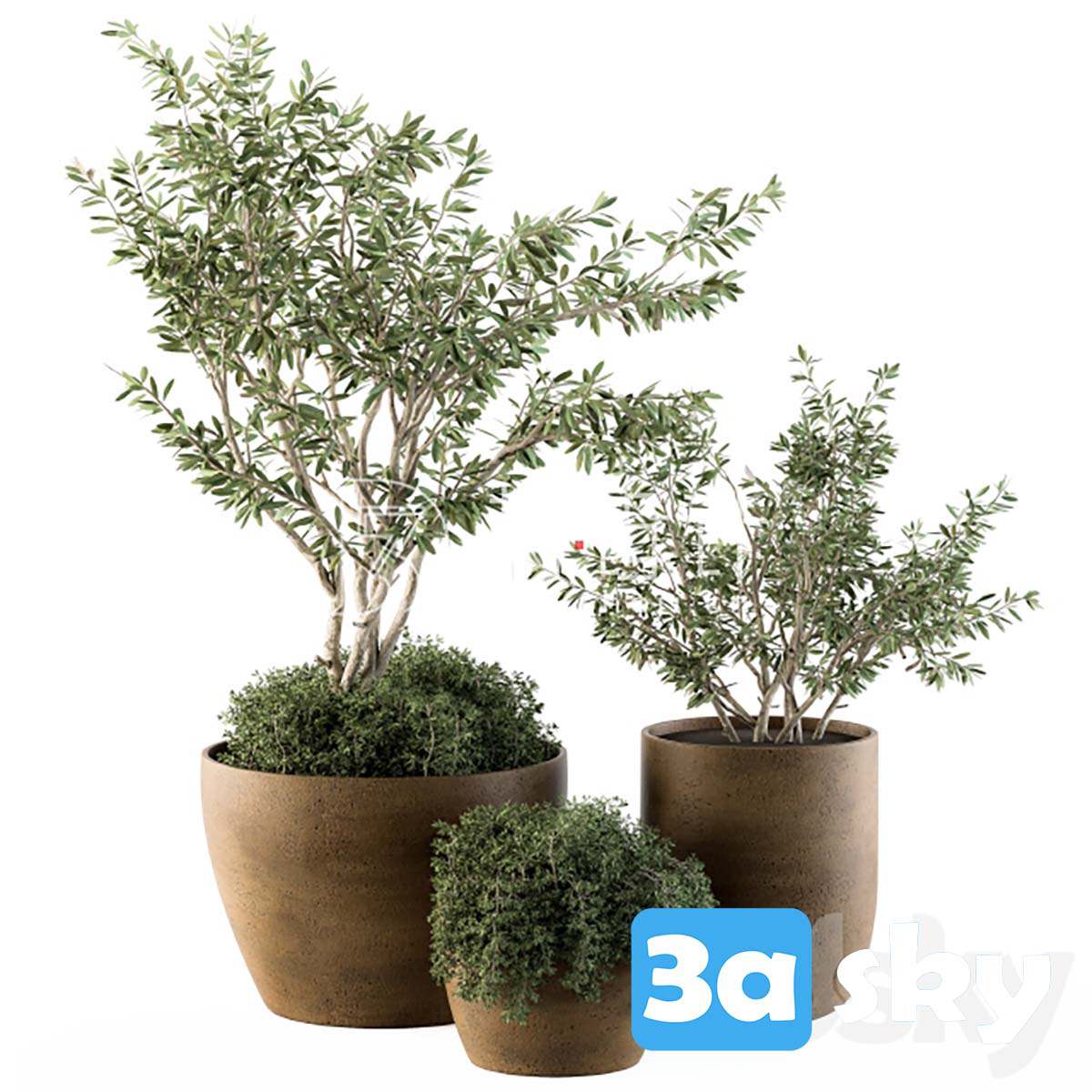 This 3D model features outdoor plants, specifically olive trees, from Set 79. It is a high-quality model suitable for architectural visualization and outdoor scene design projects. The model is detailed and realistic, adding a touch of nature to your designs.