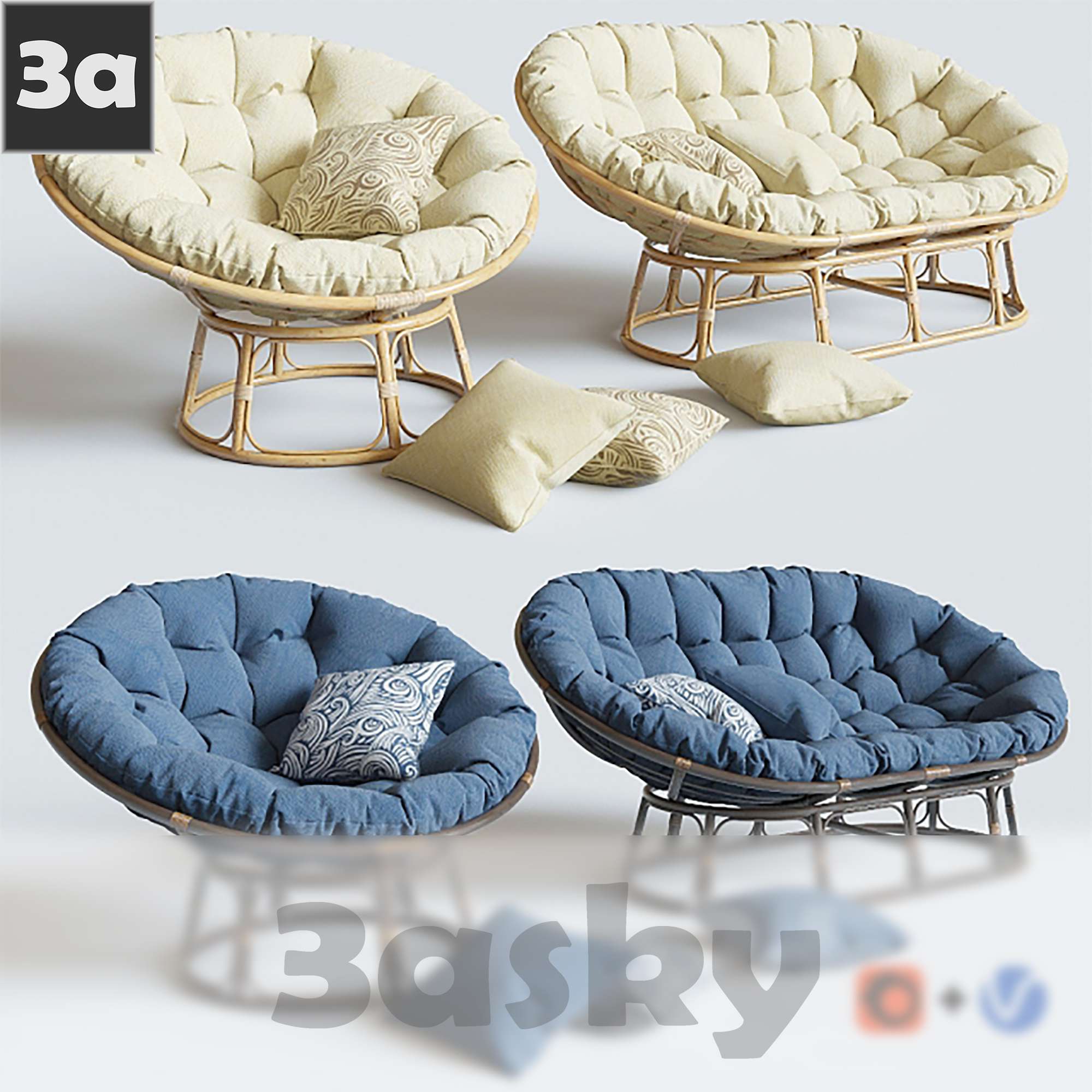 This 3D model features a Papasan Mamasan chair, a stylish and comfortable furniture piece suitable for various interior design projects. The chair design is modern and versatile, adding a touch of elegance to any room. Download this high-quality furniture design for your interior visualization needs.