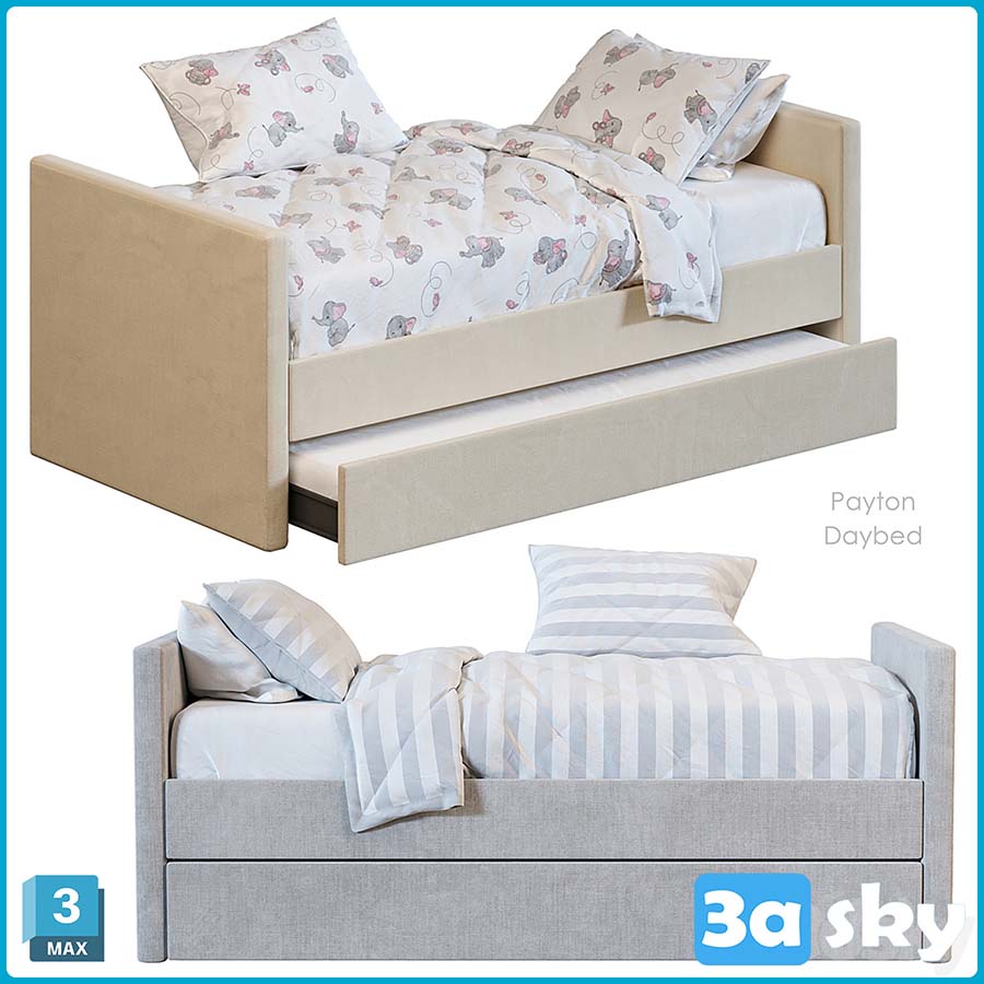 This 3D model features the Payton Bed by West Elm, a stylish and modern piece of furniture perfect for bedroom interiors. The high-quality rendering allows you to visualize the design details and dimensions of the Payton Bed.