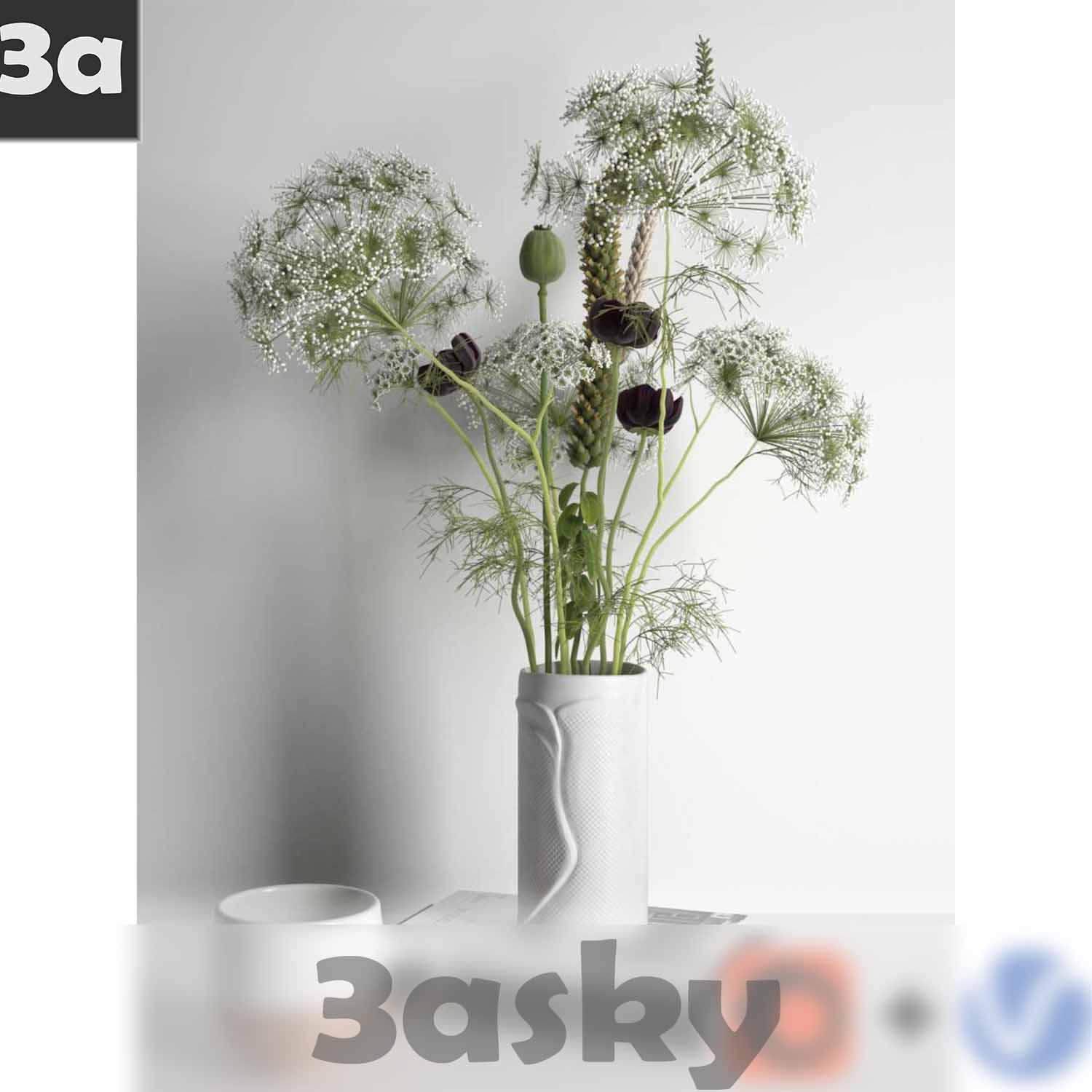This 3D model features a collection of plants, a vase, books, and a cup. It is suitable for use in interior design and architectural visualization projects. The model is detailed and realistic, making it a great addition to your library of 3D assets.