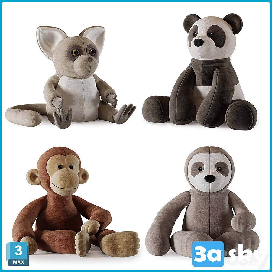 This 3D model features a collection of plush toys suitable for kids. The file is designed in 3DS MAX format, making it easy to integrate into various projects. These soft and adorable stuffed animals are perfect for creating playful and engaging visual content for children's entertainment and educational purposes.