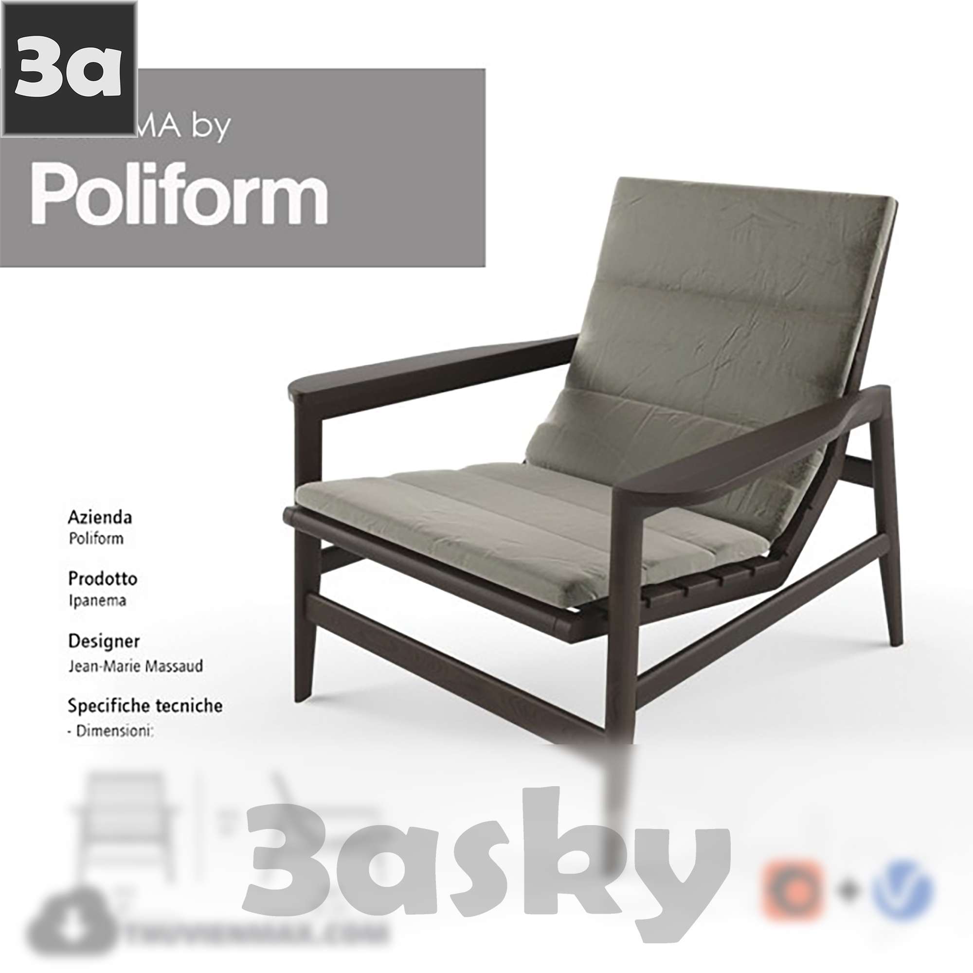 This 3D model features the Poliform Ipanema furniture design, ideal for adding a touch of elegance to your interior spaces. The file is compatible with 3DS MAX software and is ready for download. Enhance your design projects with this high-quality furniture model.