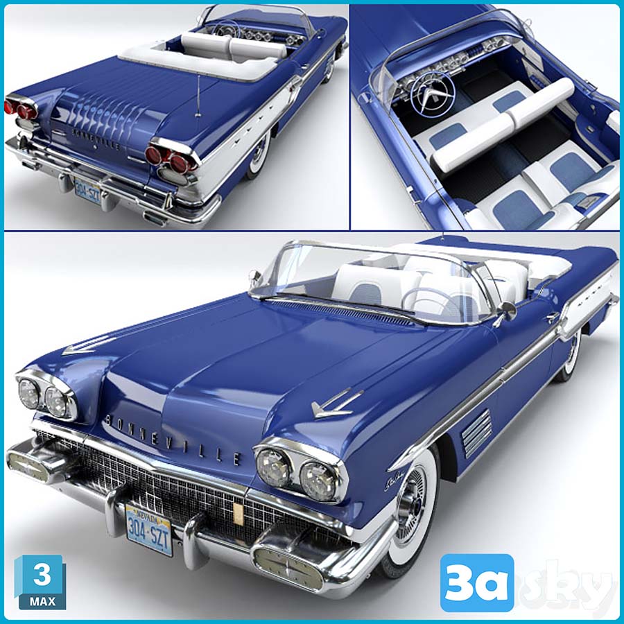 This 3D model features a detailed representation of the Pontiac Bonneville 1958, a classic vintage car. The file is in 3DS MAX format and can be used for decoration purposes in various design projects.