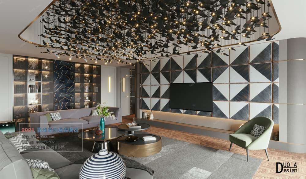 This 3D scene showcases a Postmodern style Corona model, highlighting its architectural and interior design elements. The intricate details and unique style of the model make it a standout piece for architectural visualization projects.