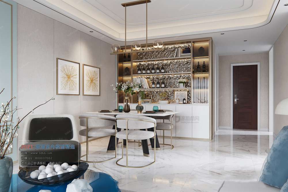 This 3D scene showcases a Postmodern style Corona model, highlighting its unique architectural and interior design elements. The intricate details and craftsmanship of the model are beautifully captured in this image, providing a glimpse into the world of modern architectural design.