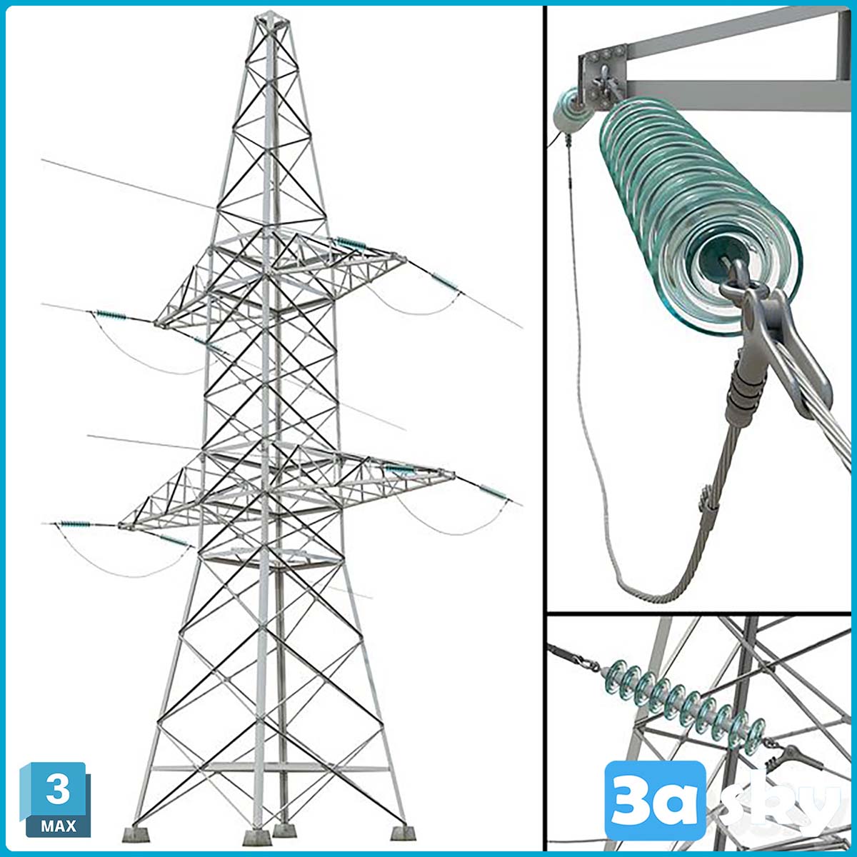 This 3D model showcases a power line tower designed using 3DS MAX software. It is a detailed representation suitable for architectural visualization and design projects. The model features intricate details and realistic textures, making it ideal for professionals in the architecture and design industry.