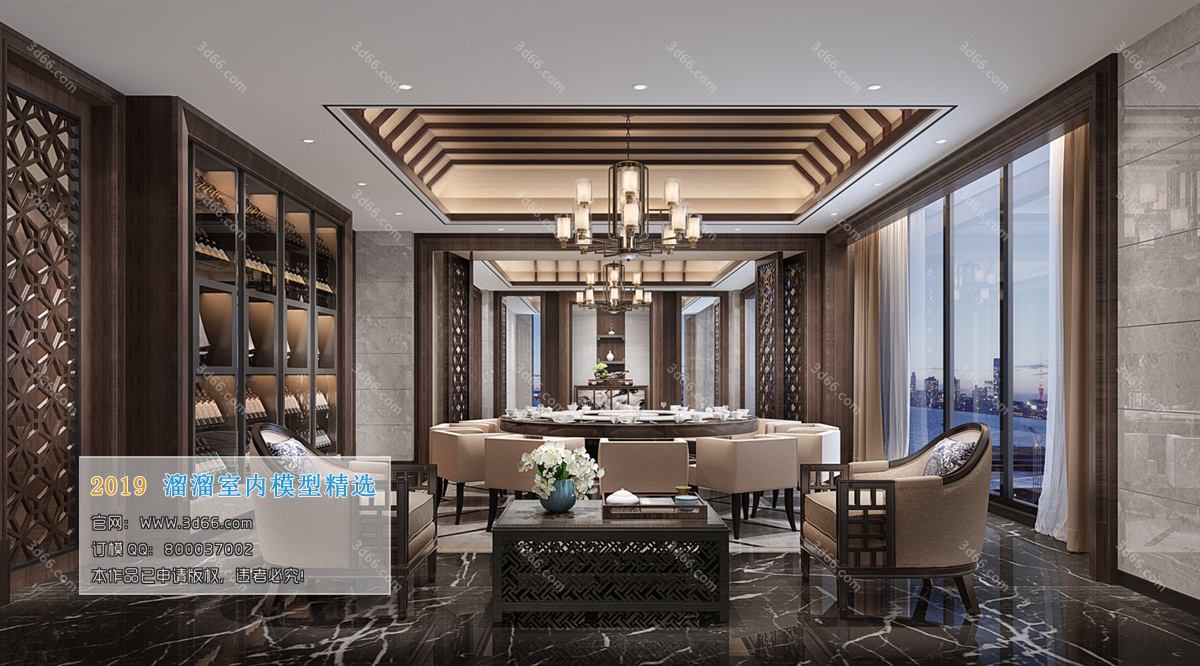 This 3D scene features a private room designed in a traditional Chinese style. The room is elegantly decorated with intricate details and traditional elements, creating a serene and inviting atmosphere. The design highlights the beauty of Chinese aesthetics and craftsmanship, making it a perfect choice for those who appreciate cultural richness in interior design.
