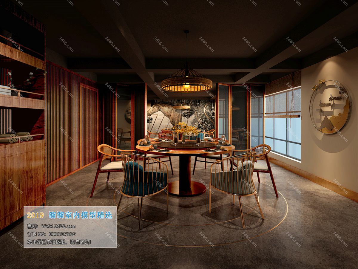 This 3D scene showcases a private room designed in a mix style. The interior design combines elements from various styles to create a unique and visually appealing space. Explore the layout, furniture, and decor in this preview image.