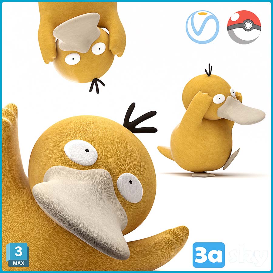 This 3D model features Psyduck, a popular character, in a high-quality 3DS MAX/KIDS file format. Perfect for use in various projects and animations.