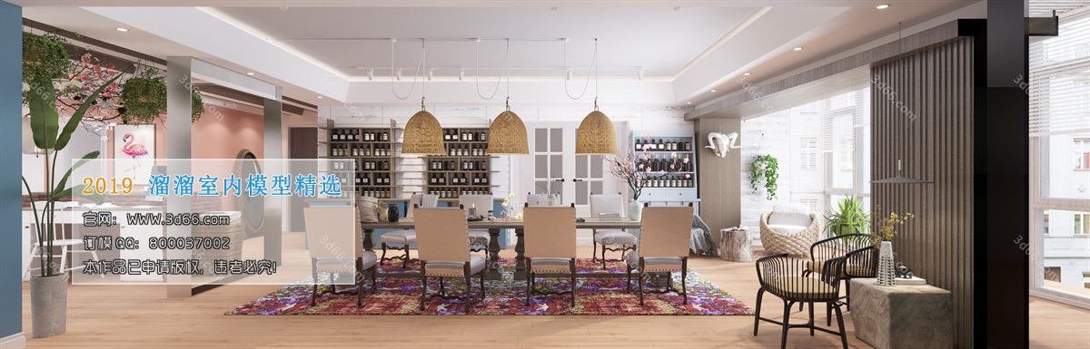 This 3D scene showcases a restaurant kitchen designed in mix style 002. The interior design features a blend of modern and traditional elements, creating a unique and inviting space. Explore the details of the kitchen layout, furniture, and decor in this preview image.