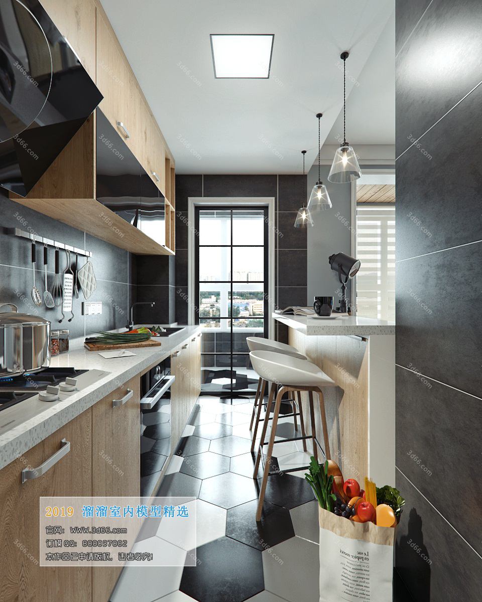 This 3D scene showcases a restaurant kitchen designed in Nordic style. The scene includes detailed elements such as kitchen appliances, furniture, and decor, all reflecting the clean and minimalist aesthetic of Nordic design. Ideal for interior designers and architects looking for inspiration or assets for their projects.