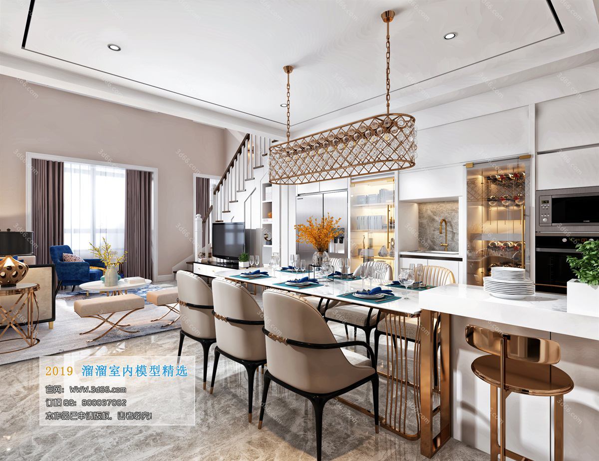 This 3D scene showcases a restaurant kitchen designed in a postmodern style. The space features sleek lines, modern fixtures, and a contemporary aesthetic. Ideal for interior designers, architects, and anyone seeking inspiration for their own projects.