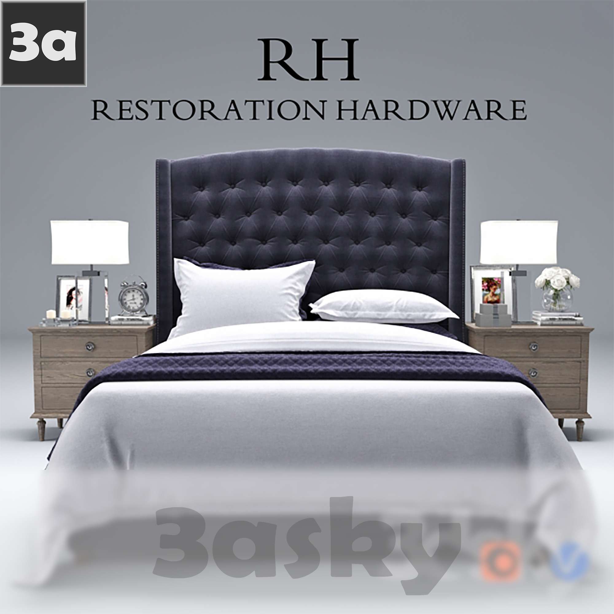 This 3D model showcases a piece of furniture from Restoration Hardware. The design is intricate and detailed, highlighting the craftsmanship of the brand. Explore this preview to get a closer look at the features and aesthetics of the furniture piece.