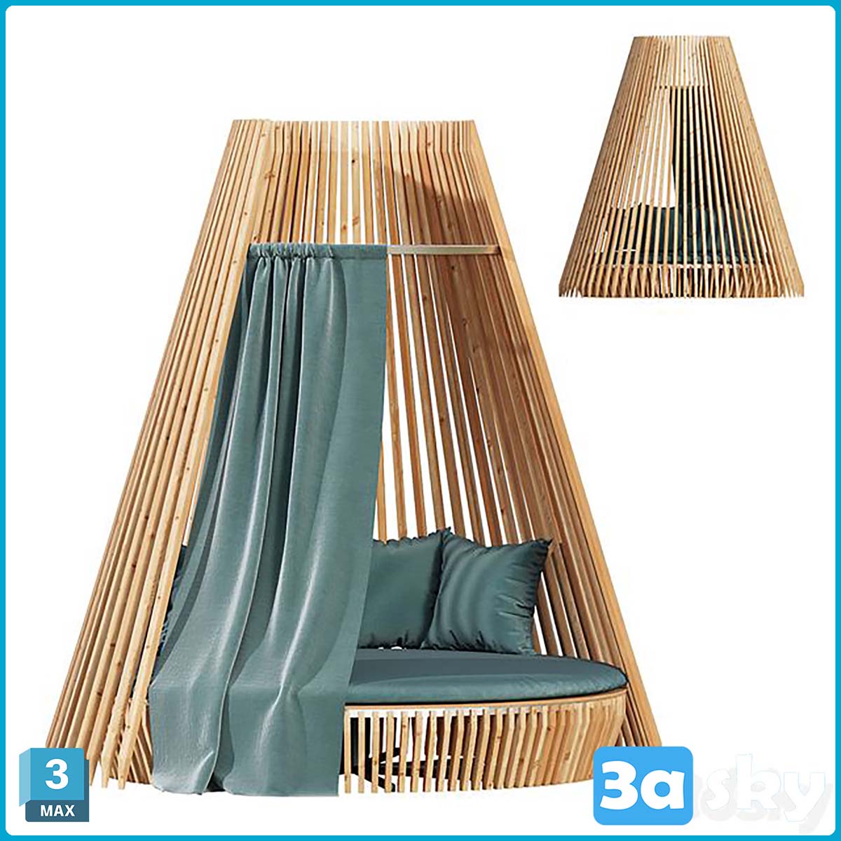 This 3D model features a round lounge chair set in a hut environment. The design is modern and stylish, suitable for interior design visualization projects. The file is in 3DS MAX format, making it easy to integrate into your design workflow.