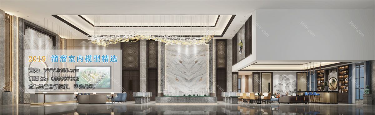 This 3D scene showcases a Sales Center designed in a Chinese architectural style. The interior features traditional Chinese design elements and decor. Experience the blend of modern technology with traditional aesthetics in this visually stunning representation.