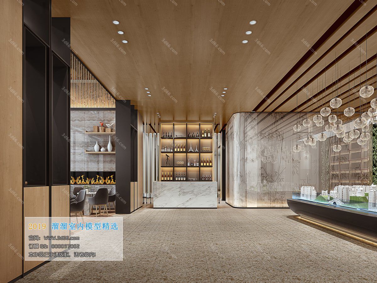 This 3D scene showcases a modern style sales center with a contemporary design. The architecture and interior design are highlighted in this preview, providing a glimpse into the aesthetic and layout of the space. Explore the details and features of this sales center model in 3DS MAX format.