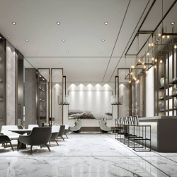 This 3D scene features a modern sales office interior design created using 3DS MAX. The scene includes detailed furniture, lighting, and decor elements, providing a realistic representation of a contemporary sales office space. Ideal for architectural visualization projects and interior design inspiration.