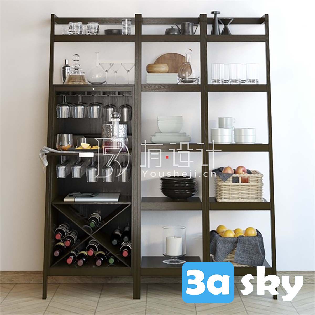 This 3D model features the Sawyer Mocha Leaning Wine Bar, a stylish and functional piece of furniture designed for modern living spaces. The model is created with attention to detail, making it ideal for interior visualization projects. Download this high-quality furniture design to enhance your architectural renderings and interior design presentations.