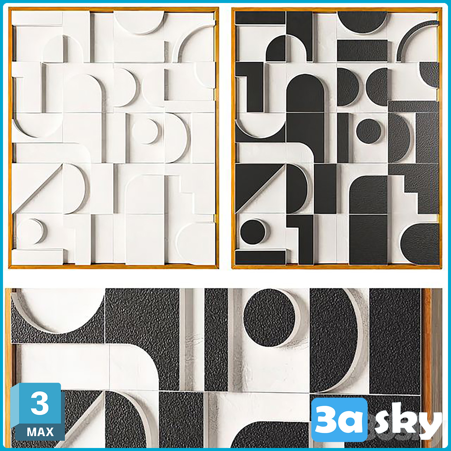 This 3D model showcases a sculptural wall decoration created in 3DS MAX. The design features intricate shapes and patterns, adding a touch of artistry to any interior space. Perfect for interior designers, architects, and art enthusiasts looking for unique decor elements.