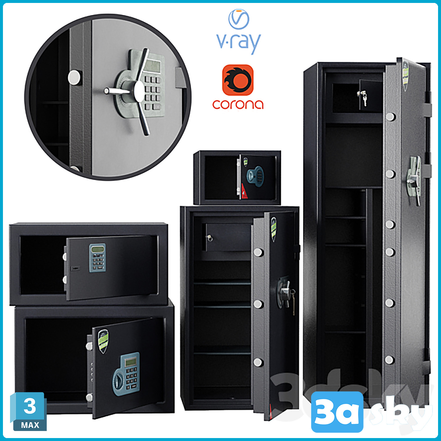 This 3D model showcases a set of safes, ideal for use in security-related projects or interior design visualizations. The detailed design and realistic textures make it a versatile asset for various applications.