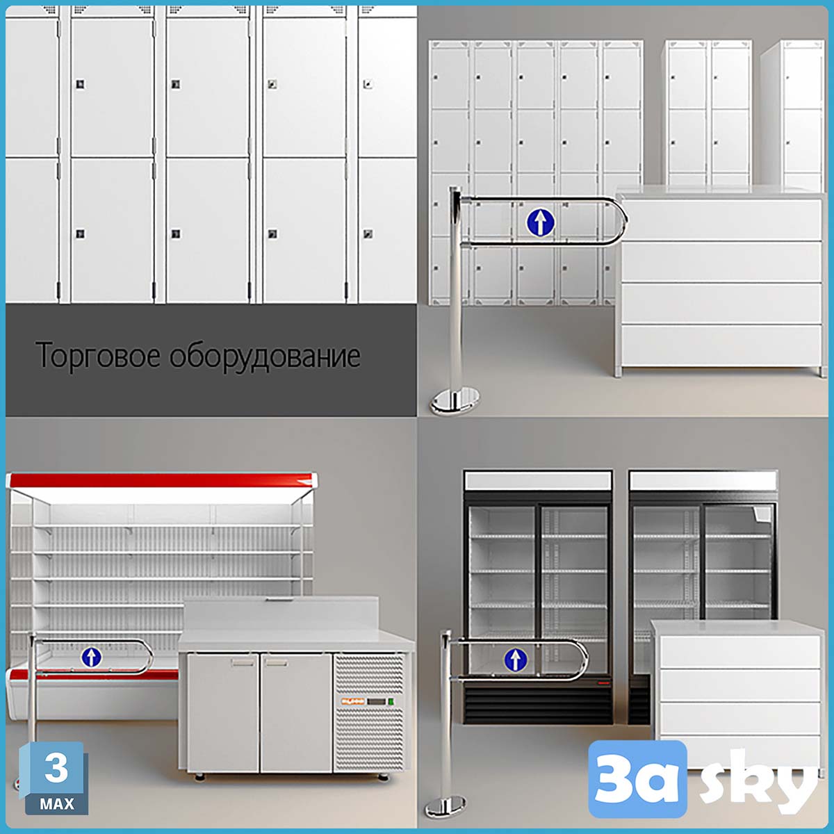 This 3D model showcases a set of shop equipment in a preview format. It is designed for use in 3DS Max and other modeling software. The model includes various items commonly found in a shop setting, providing a realistic and detailed representation for your projects.